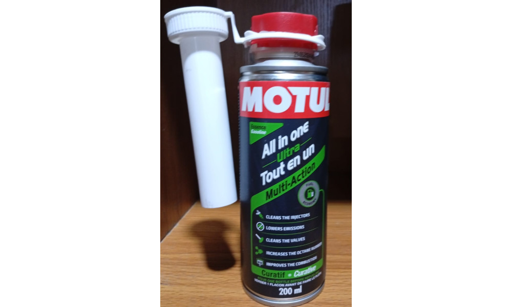 MOTUL® ALL IN ONE ULTRA GASOLINE effectively cleans deposits and fouling inherent in the operation of the injectors and fuel delivery systems of the engine thanks to its curative multi-action properties thus limiting: injector nozzle fouling corrosion in the fuel system gumming in the injector or carburetor dirtying of combustion chambers and inlet valves MOTUL® ALL IN ONE ULTRA GASOLINE provides a perfect lubrication during cleaning process and prevents removed micro-particles from depositing. By removing deposits and clogging from valves, injectors and combustion chambers, MOTUL® ALL IN ONE ULTRA GASOLINE enables optimal combustion to restore engine performance, MOTUL® ALL IN ONE ULTRA GASOLINE also increases the Octane number of the fuel, achieving powerful combustion and reducing fuel consumption, and thus reducing exhaust gas and particulate emissions.
